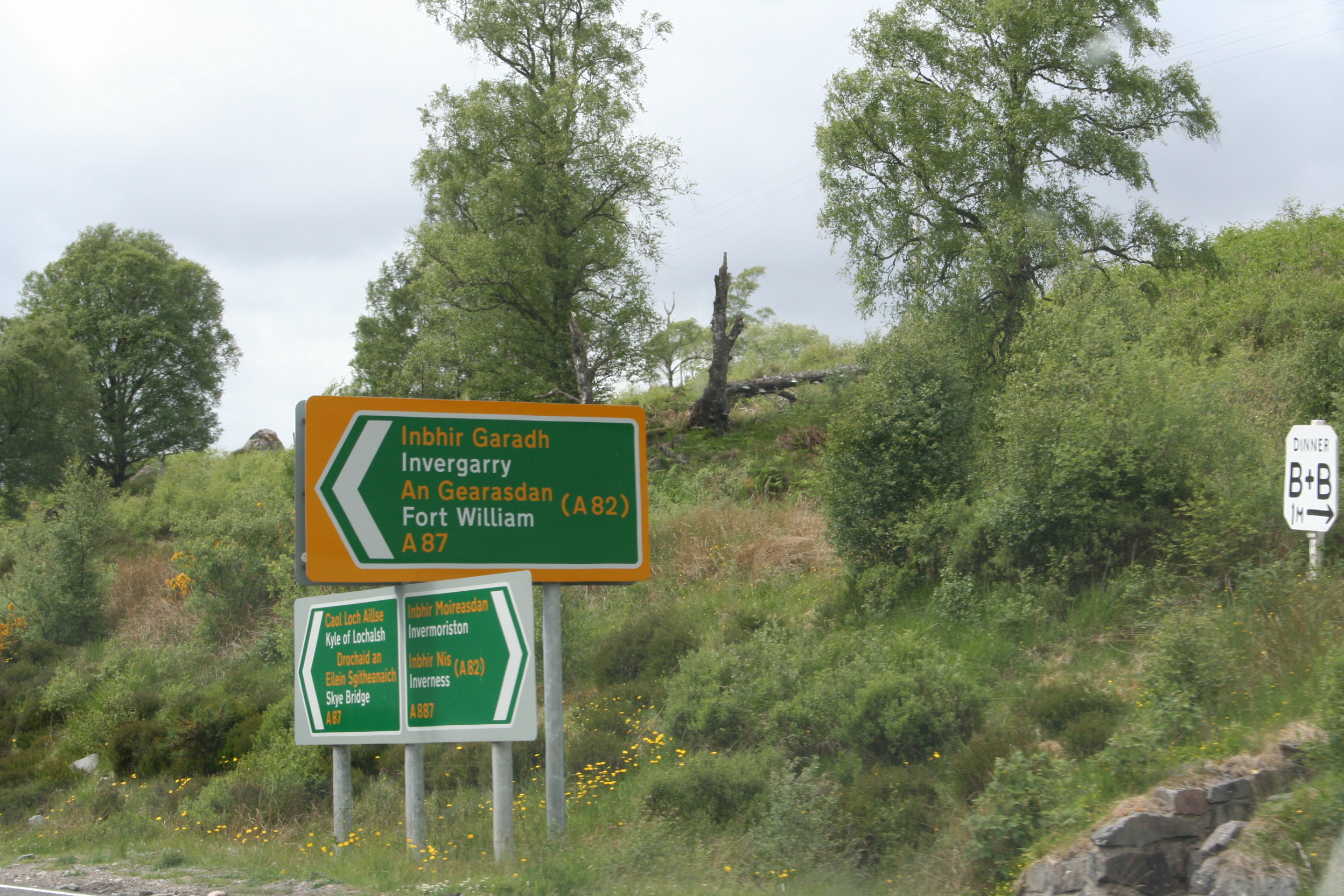 As we got deeper into the western Highlands, we began to see road signs in two languages, English, and Gaelic. Sometimes the English names were too hard to attempt, nevermind the Gaelic.