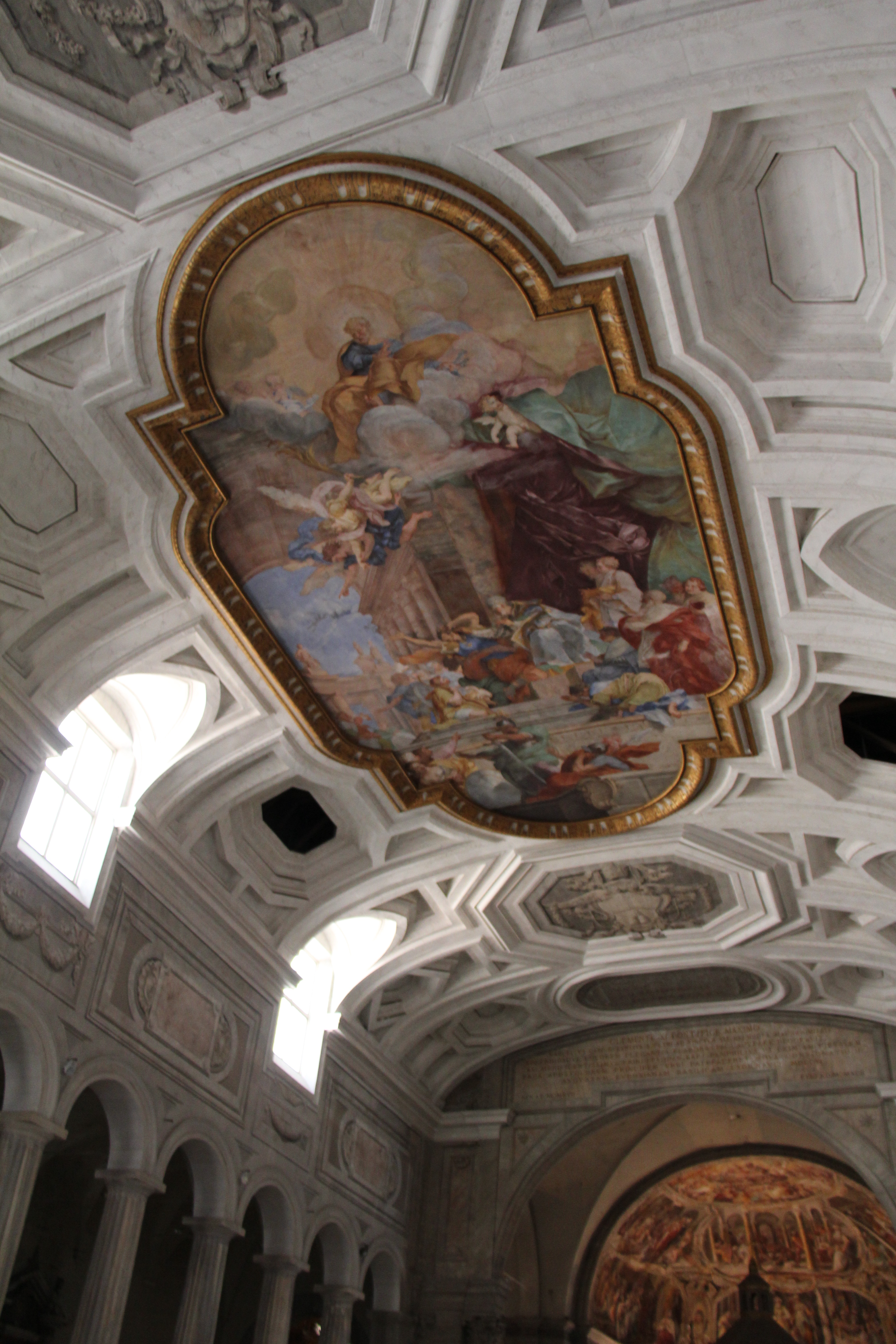 Passing through the dark, gated courtyard, we entered the basilica which, on the inside, was fairly bathed in sunlight. Looking up, we saw a fresco painted in 1706, depicting Peter and the chains.