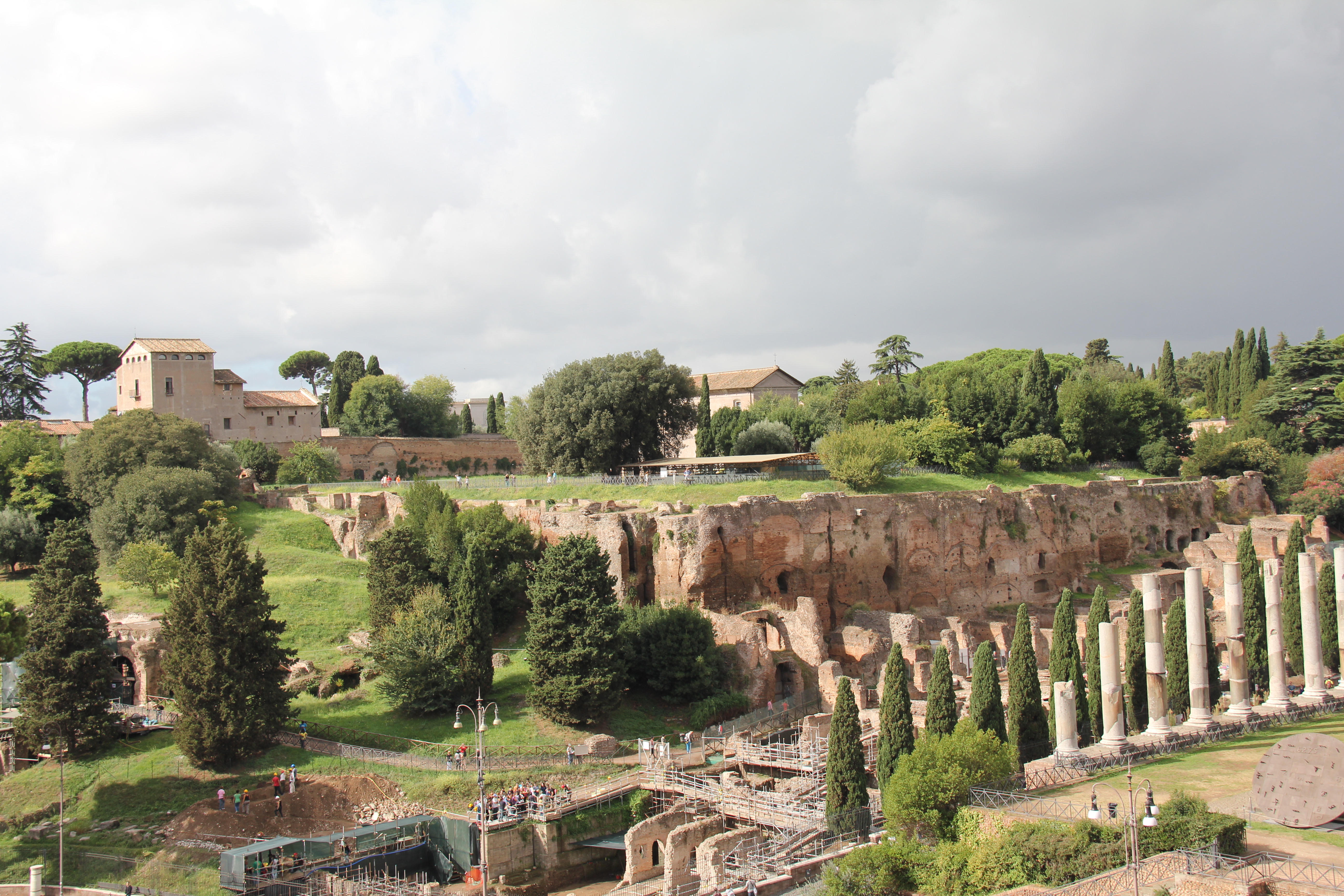 Leaving the lower level, we ascended to the upper tiers of the Colosseum, which had amazing views of both the Colosseum itself, and the Forum surrounding it. By this time some serious storm clouds were starting to gather.