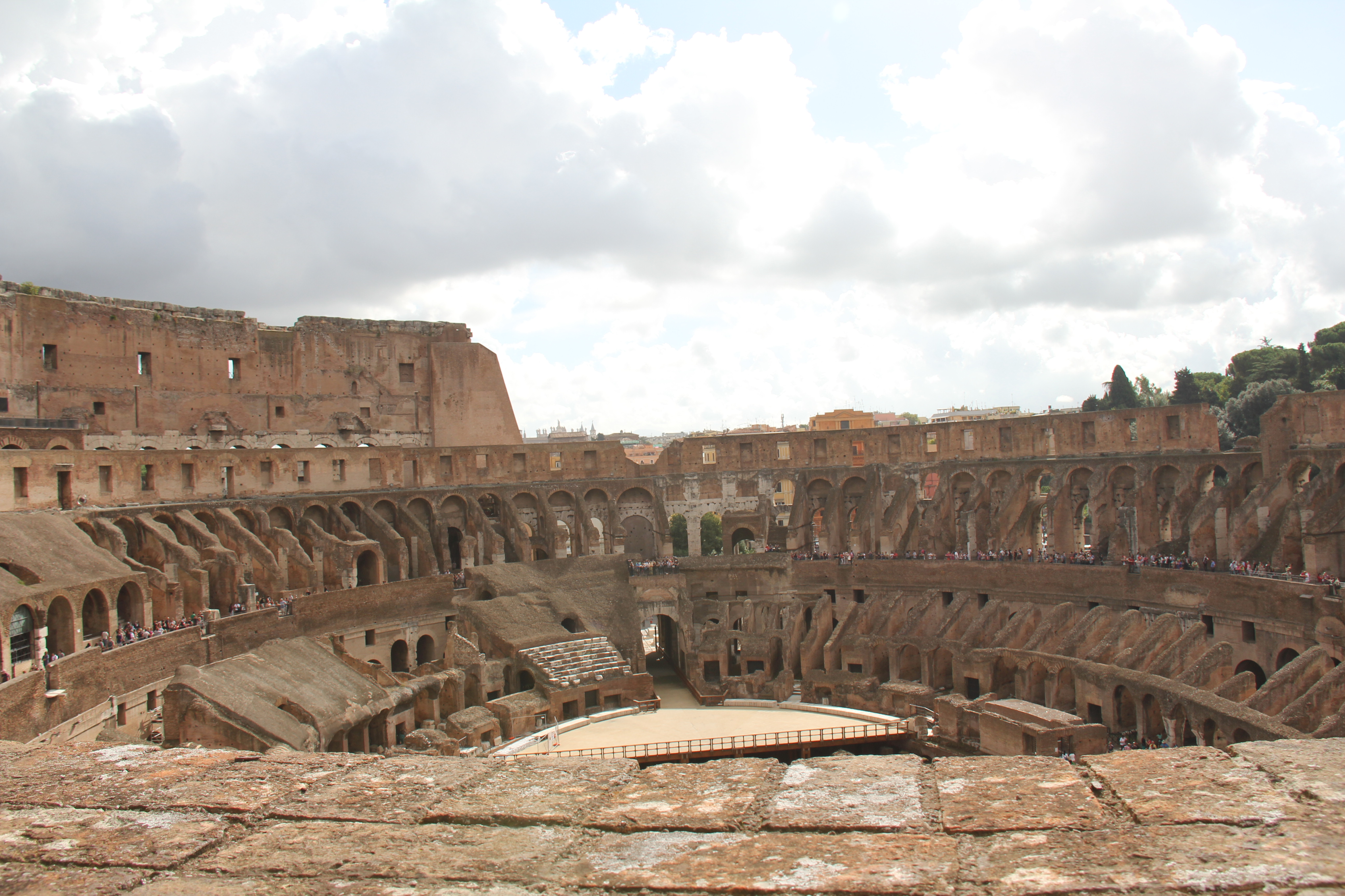 The voices of my fellow tourists dissolved into silence as I considered the events that had transpired in the very place where I stood. At that point we were standing on the floor that you can see in the picture below, which would have covered the entire interior of the original Colosseum: