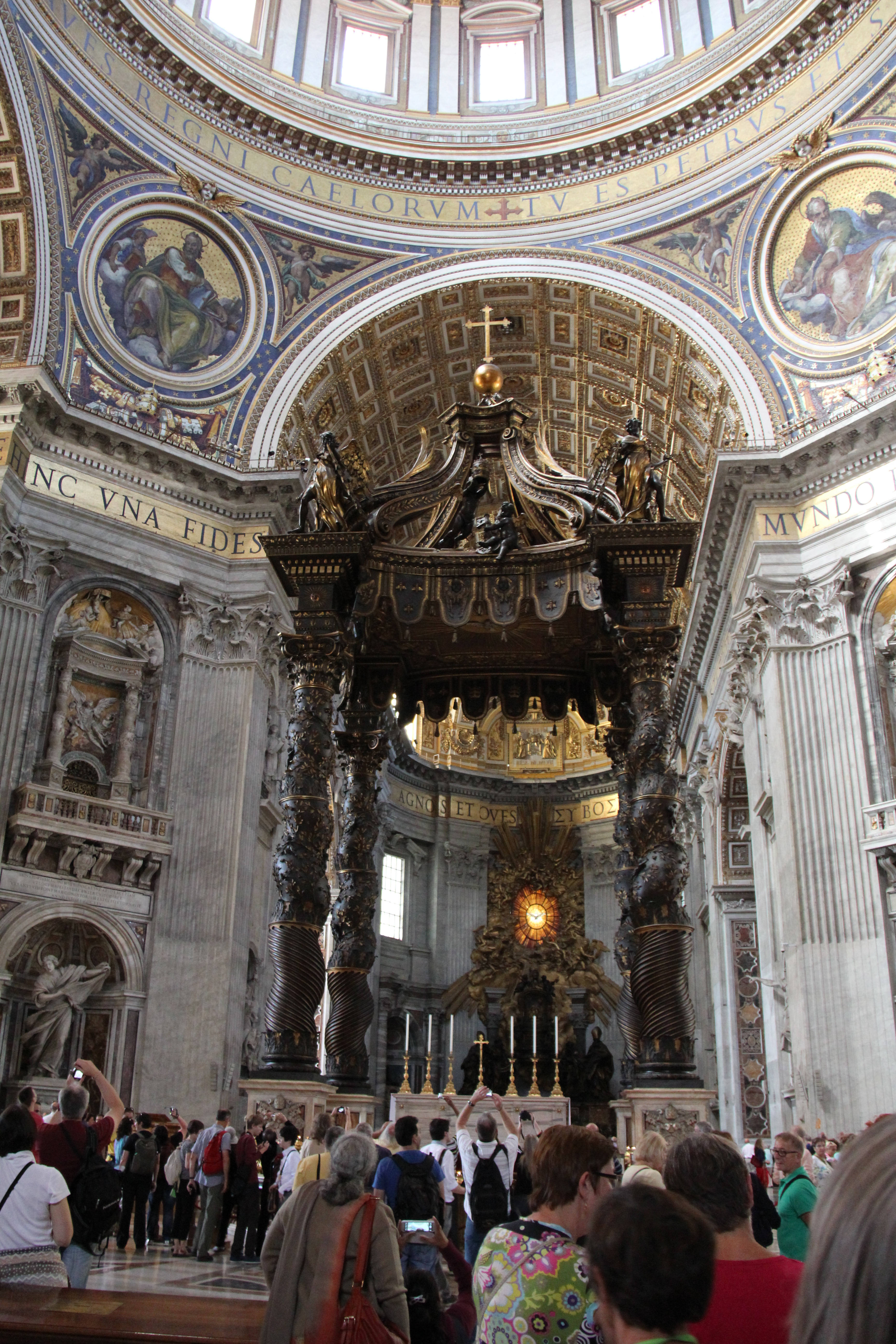 The final stop on the tour was St. Peter’s Basilica, not just a church, but one of the holiest Roman Catholic sites. Tradition, and more recent evidence, holds that St. Peter’s tomb is directly below the alter inside the basilica. That in and of itself would be amazing enough. But the sheer amount of treasure and wealth on display inside of St. Peter’s is mind-boggling. I couldn’t process it all. Everywhere I looked there was gold, marble, and other works of opulent splendor. (And oddly enough, Charles Edward Stuart, the Bonnie Prince Charlie of Scotland, is entombed there as well, having been granted asylum by the pope of his time.)