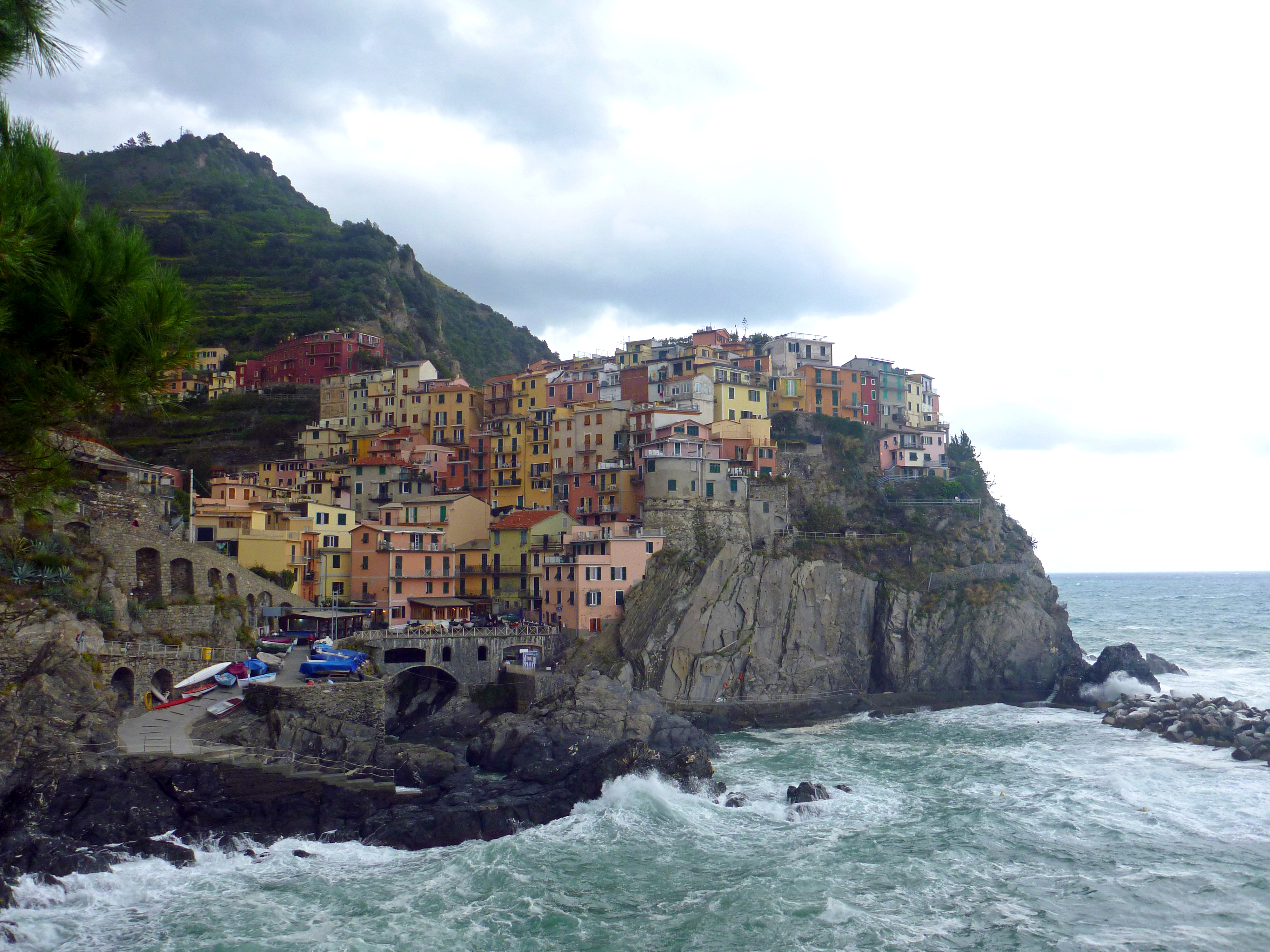 Cinque Terre is another UNESCO World Heritage Site, and we were eager to get there. We had no major snafus on the drizzly drive north, which seemed pretty easy until we got to La Spezia, just outside of Cinque Terre. We made it through La Spezia with no trouble, but once we passed that town, the road became ever more steep and twisting.
